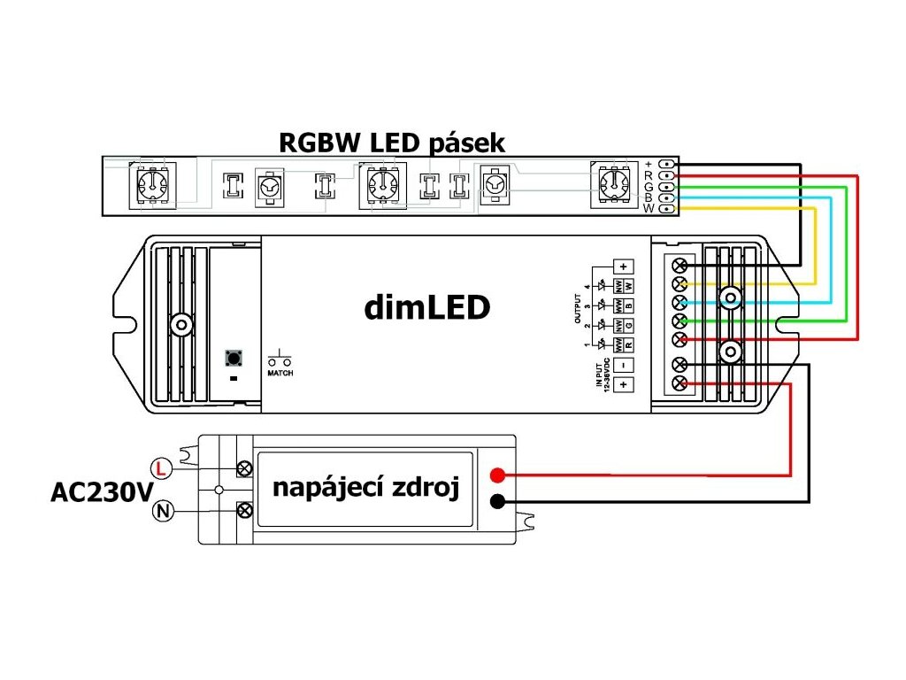 Přijímač je kompatibilní s RGBW ovladači řady dimLED a jednobarevným ovladačem OVL 4ALL!!!